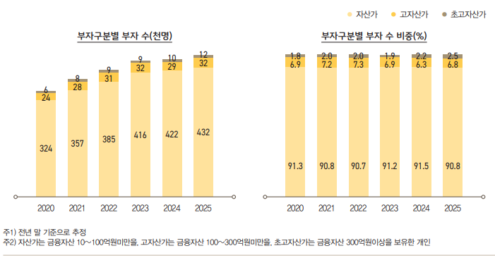 KB 한국 부자 보고서를 보면 금융자산 10억-100억 자산가는 43만명. 그리고 다들 쉽게 100억, 100억 하는데 고자산가는 3만 2천명뿐. 인식과 현실이 얼마나 괴리가 큰지 입에 가그린한거처럼 시원하게 깨달을수있다.